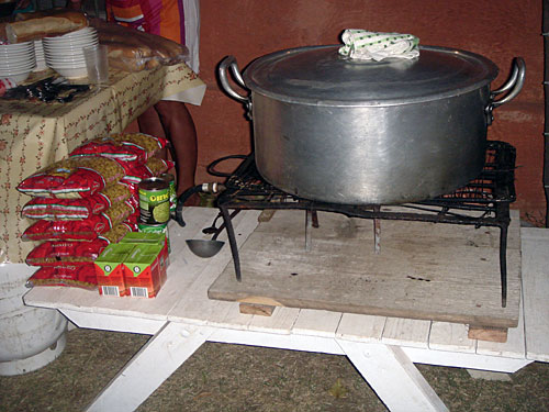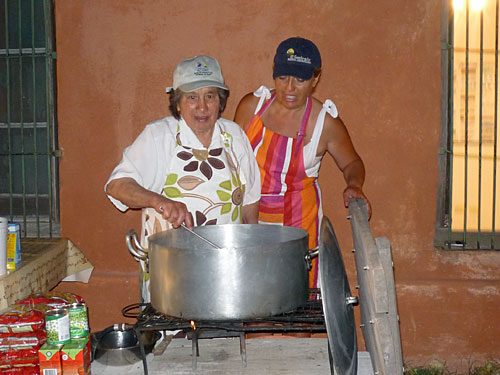 Raimunda Silvera y Mirta Resch cocinando el guiso criollo...