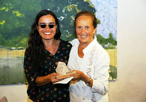 A la que llega siempre cimbreando entre los pastos llorones, las festucas y los senderos de Alicia en el país de las maravillas, con su sonrisa de recién bajada del paraíso o del placer, esa que disfruta de la luz de su nieta que transgrede en nombre propio y de su abuela, a ella que dialoga con sus potrillos en las noches de escarcha y luna. Por sus múltiples, diversos y particulares sobres intervenidos y obras que fueron recibidas para los proyectos de arte correo organizados por Corral de Piedra.